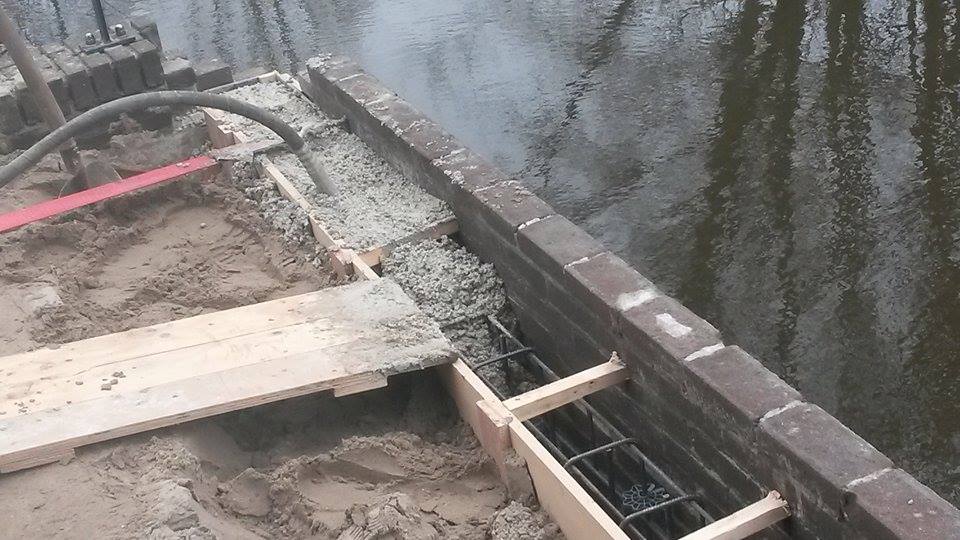 Op dit moment zijn wij bezig met het herstellen/ verstevigen van bovengenoemde kademuur.